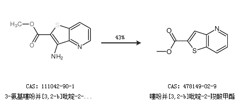 1.通过3-氨基噻吩并[3,2-b]吡啶-2-甲酸甲酯合成噻吩并[3,2-b]吡啶-2-羧酸甲酯,收率约43%;