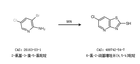 1.通过2-氨基-3-溴-5-氯吡啶合成6-氯-2-疏基噻唑并[4,5-b]吡啶,收率约98%;