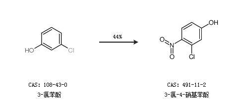 2.通过3-氯苯酚合成3-氯-4-硝基苯酚,收率约44%;