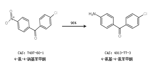 1.通过4-氯-4-硝基苯甲酮合成4-氨基-4-氯苯甲酮,收率约96%;