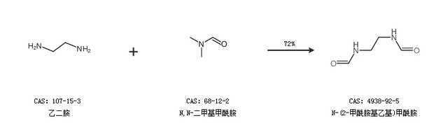 2.通过乙二胺和N,N-二甲基甲酰胺合成N-(2-甲酰胺基乙基)甲酰胺,收率约72%;