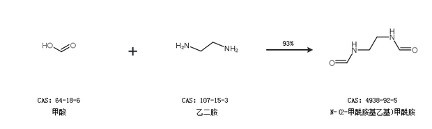 1.通过甲酸和乙二胺合成N-(2-甲酰胺基乙基)甲酰胺,收率约93%;