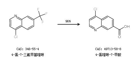 1.通过4-氯-7-三氟甲基喹啉合成4-氯喹啉-7-甲酸,收率约96%;