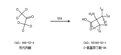 1.通过氘代丙酮合成2-氨基异丁酸-D6,收率约55%;