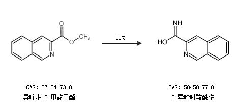 2.通过异喹啉-3-甲酸甲酯合成3-异喹啉羧酰胺,收率约99%;