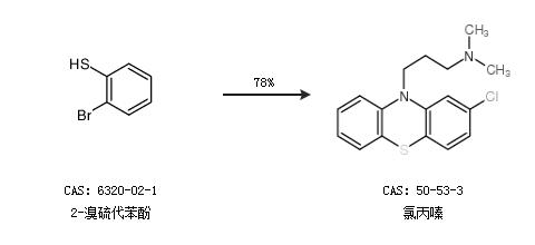 2.通过2-溴硫代苯酚合成氯丙嗪,收率约78%;