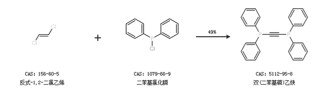 1.通过反式-1,2-二氯乙烯和二苯基氯化膦合成双(二苯基磷)乙炔,收率约49%;