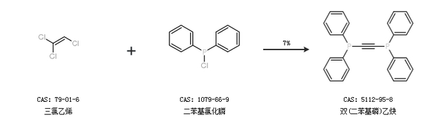 2.通过三氯乙烯和二苯基氯化膦合成双(二苯基磷)乙炔,收率约7%;