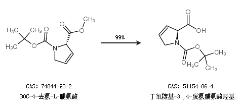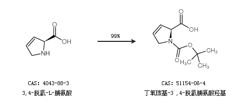 1.通过3,4-脱氢-L-脯氨酸合成丁氧羰基-3 ,4-脱氢脯氨酸羟基,收率约99%;