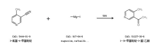 1.通过3-氰基-4-甲基吡啶和magnesium,carbanide,iodide合成1-(4-甲基吡啶-3-基)乙酮,收率约56%;