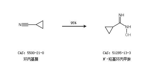 1.通过环丙基腈合成N''-羟基环丙甲脒,收率约95%;
