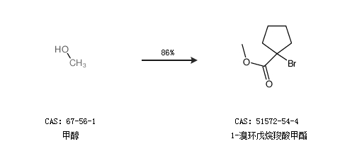 2.通过甲醇和环戊酸合成1-溴环戊烷羧酸甲酯,收率约86%;