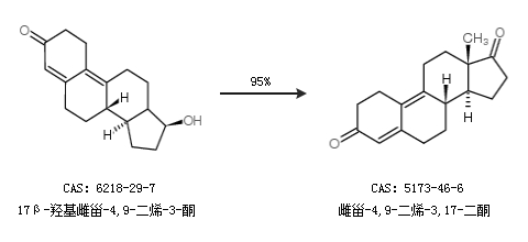 1.通过17β-羟基雌甾-4,9-二烯-3-酮合成雌甾-4,9-二烯-3,17-二酮,收率约95%;