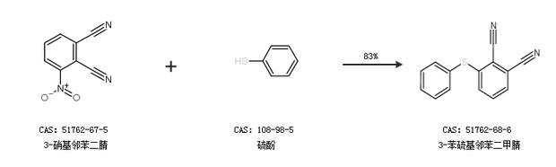 1.通过3-硝基邻苯二腈和硫酚合成3-苯硫基邻苯二甲腈,收率约83%;