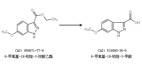2.通过6-甲氧基-1H-吲唑-3-羧酸乙酯合成6-甲氧基-1H-吲唑-3-甲酸