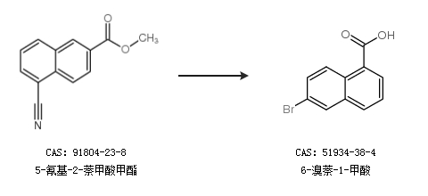 2.通过5-氰基-2-萘甲酸甲酯合成6-溴萘-1-甲酸