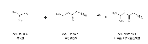 2.通过异丙胺和氰乙酸乙酯合成2-氰基-N-异丙基乙酰胺,收率约98%;