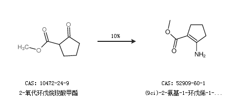 1.通过2-氧代环戊烷羧酸甲酯合成(9ci)-2-氨基-1-环戊烯-1-羧酸甲酯,收率约10%;