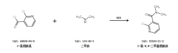2.通过2-氯烟酰氯和二甲胺合成2-氯-N,N-二甲基烟酰胺,收率约86%;