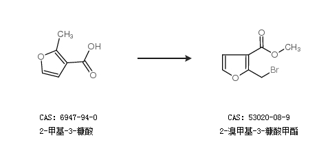 1.通过2-甲基-3-糠酸合成2-溴甲基-3-糠酸甲酯
