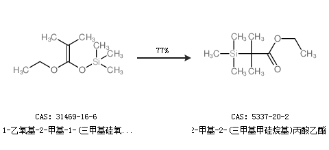 2.通过1-乙氧基-2-甲基-1-(三甲基硅氧基)-1-丙烯合成2-甲基-2-(三甲基甲硅烷基)丙酸乙酯,收率约77%;