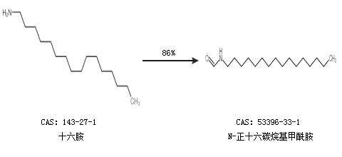 1.通过十六胺和甲酸乙酯合成N-正十六碳烷基甲酰胺,收率约84%;