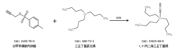 2.通过对甲苯磺酸丙炔酯和三正丁基氢化锡合成1,2-丙二烯三正丁基锡,收率约63%;