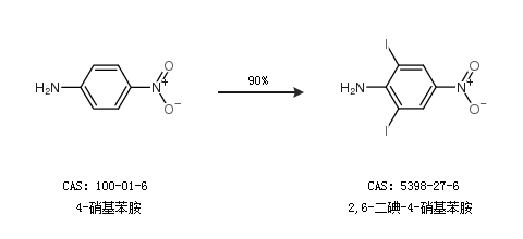 1.通过4-硝基苯胺合成2,6-二碘-4-硝基苯胺,收率约90%;