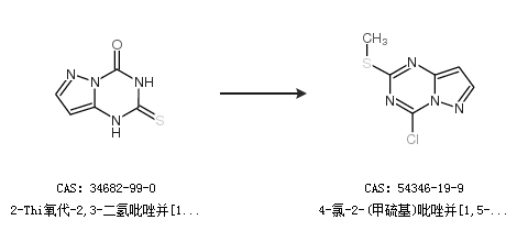 2.通过2-Thi氧代-2,3-二氢吡唑并[1,5-a][1,3,5]噻嗪-4(1H)-酮合成4-氯-2-(甲硫基)吡唑并[1,5-a][1,3,5]三嗪