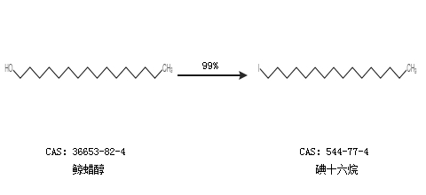 1.通过鲸蜡醇合成碘十六烷,收率约99%;