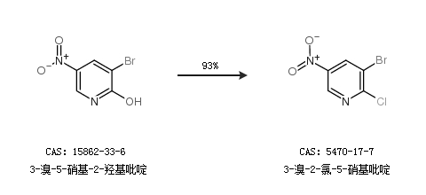 1.通过3-溴-5-硝基-2-羟基吡啶合成3-溴-2-氯-5-硝基吡啶,收率约93%;