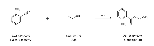 2.通过3-氰基-4-甲基吡啶和乙醇合成4-甲基烟酸乙酯,收率约85%;
