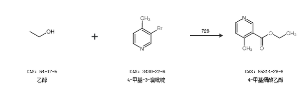 1.通过乙醇和4-甲基-3-溴吡啶合成4-甲基烟酸乙酯,收率约72%;