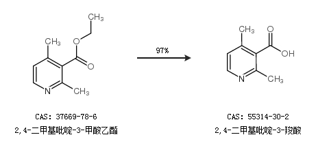 1.通过2,4-二甲基吡啶-3-甲酸乙酯合成2,4-二甲基吡啶-3-羧酸,收率约97%;