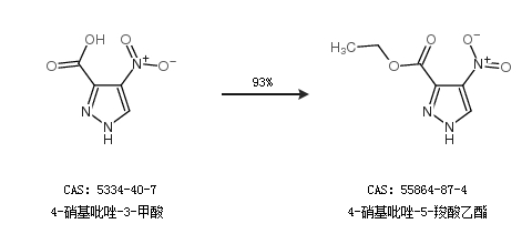 2.通过4-硝基吡唑-3-甲酸合成4-硝基吡唑-5-羧酸乙酯,收率约93%;