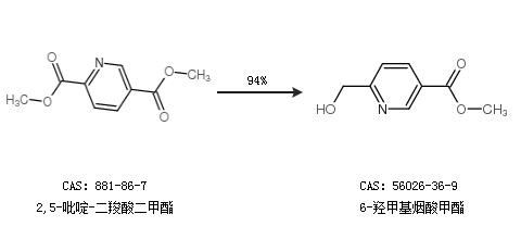 1.通过2,5-吡啶-二羧酸二甲酯合成6-羟甲基烟酸甲酯,收率约94%;
