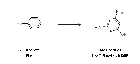 1.通过硫酚合成2,4-二氨基-6-羟基嘧啶
