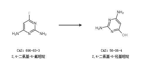 2.通过2,4-二氨基-6-氟嘧啶合成2,4-二氨基-6-羟基嘧啶