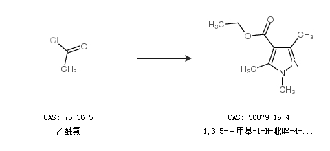 1.通过乙酰氯合成1,3,5-三甲基-1-H-吡唑-4-甲酸乙酯