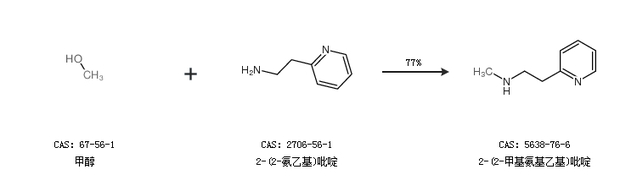 1.通过甲醇和2-(2-氨乙基)吡啶合成2-(2-甲基氨基乙基)吡啶,收率约77%;