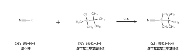 2.通过氰化钾和叔丁基二甲基氯硅烷合成叔丁基氰基二甲基硅烷,收率约91%;