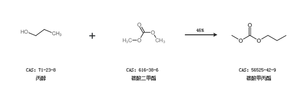 2.通过丙醇和碳酸二甲酯合成碳酸甲丙酯,收率约46%;