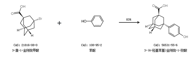 1.通过3-溴-1-金刚烷甲酸和苯酚合成3-(4-羟基苯基)金刚烷-1-羧酸,收率约83%;