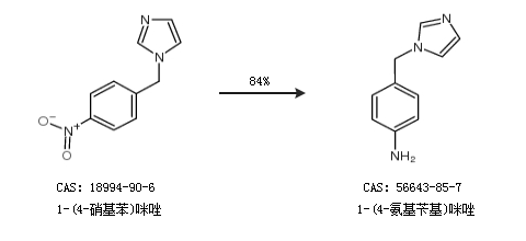 1.通过1-(4-硝基苯)咪唑合成1-(4-氨基苄基)咪唑,收率约84%;