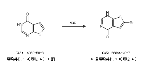 1.通过噻吩并[2,3-d]嘧啶-4(3H)-酮合成6-溴噻吩并[2,3-D]嘧啶-4(3H)-酮,收率约93%;