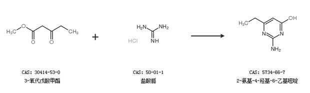 2.通过3-氧代戊酸甲酯和盐酸胍合成2-氨基-4-羟基-6-乙基嘧啶