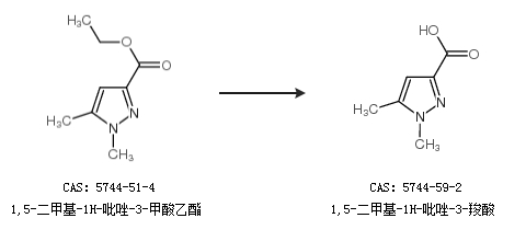 1.通过1,5-二甲基-1H-吡唑-3-甲酸乙酯合成1,5-二甲基-1H-吡唑-3-羧酸