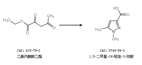 2.通过乙酰丙酮酸乙酯合成1,5-二甲基-1H-吡唑-3-羧酸