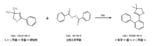 1.通过4,4-二甲基-2-苯基-2-噁唑啉和过氧化苯甲酰合成2-联苯-2-基-4,4-二甲基-4,5-二氢噁唑,收率约79%;