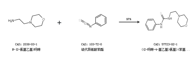 1.通过N-(2-氨基乙基)吗啉和硫代异氰酸苯酯合成((2-吗啉-4-基乙基)氨基)(苯基氨基)甲烷-1-硫酮,收率约97%;